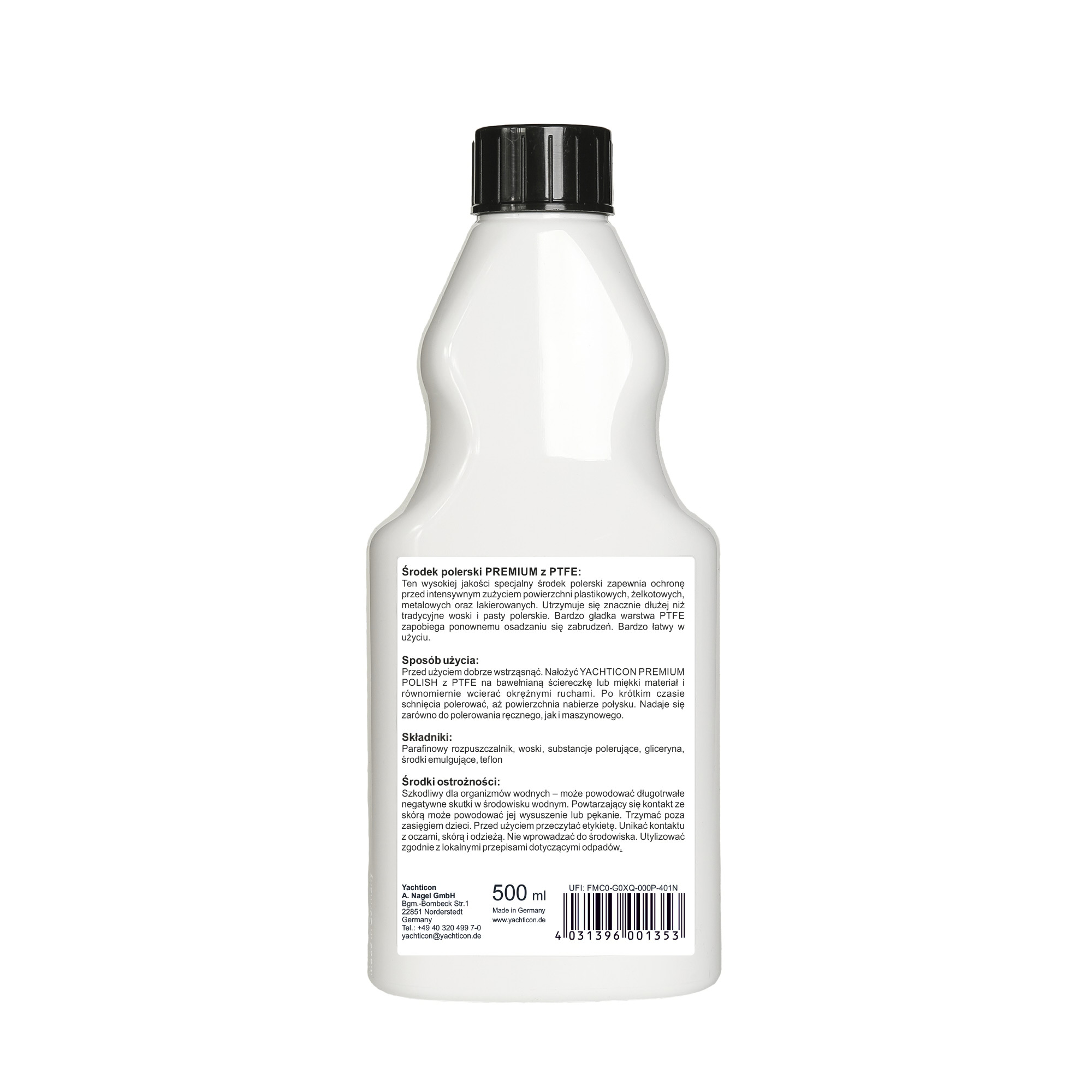 Najwyższej jakości środek polerujący, czyszczący i zabezpieczający z teflonem. Usuwa wszystkie rodzaje brudu oraz przebarwień. Zapewnia ochronę przed starzeniem i niszczeniem laminatu, żelkotu, metalu oraz malowanych powierzchni. Zabezpiecza na dłużej niż konwencjonalne woski i środki polerujące. Idealny jako środek polerski przed użyciem wosku Yachticon Premium Hard Wax.