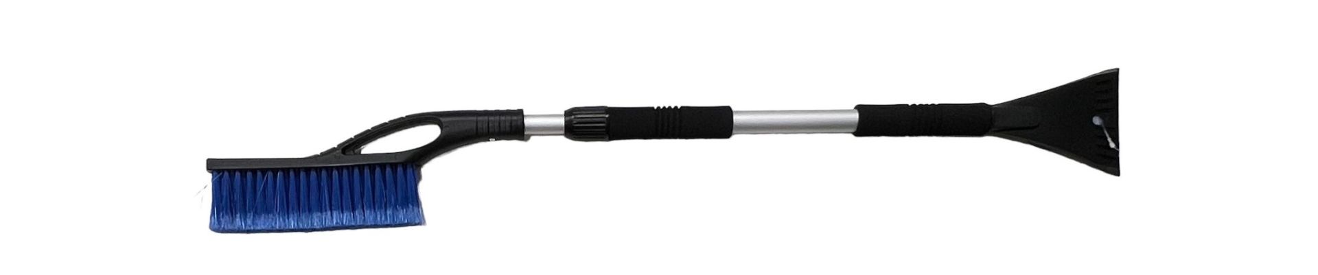 Rozsuwany aluminiowy trzonek teleskopowy (80 - 120 cm) z miękką szczotką do odśnieżania i wytrzymałą skrobaczką do lodu.
